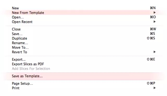 Sketch 可讓你直接從范本(Templates) 創(chuàng)建一個新的文件,點擊菜單選項 File > New from template 便可。你也可以把當(dāng)前的文件保存為模板(Templates),點擊 File > Save as template 便成。