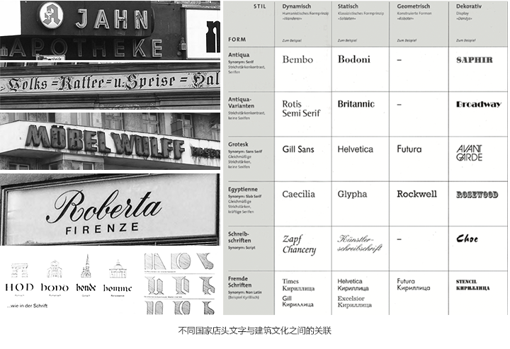 如在不同文化背景的國家,店面門口招牌字設計的不同,以及它與建筑文化之間的關聯(lián);
