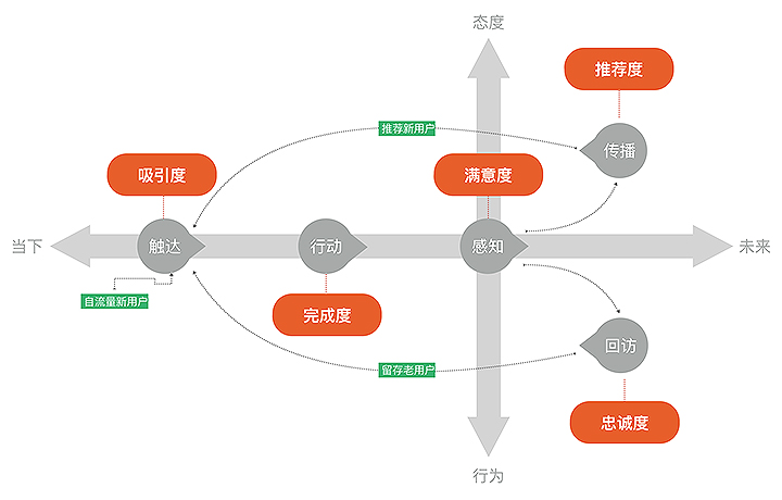 以上這3點(diǎn)是我們?cè)O(shè)計(jì)人員在工作中需要看數(shù)據(jù)的原因。但在設(shè)計(jì)工作中,數(shù)據(jù)使用主要關(guān)注2個(gè)方面,一個(gè)是看什么數(shù)據(jù),另一個(gè)是如何使用數(shù)據(jù)。設(shè)計(jì)師看什么數(shù)據(jù),我們根據(jù)用戶體驗(yàn)設(shè)計(jì)目標(biāo)與產(chǎn)品生命周期,形成了用戶體驗(yàn)的“5度”模型,即吸引度、完成度、滿意度、忠誠(chéng)度、推薦度。不同產(chǎn)品的5度具體指標(biāo)要根據(jù)產(chǎn)品實(shí)際情況來(lái)定義,今天我就不展開(kāi)來(lái)講了,詳細(xì)可以查看阿里UED博客或《U一點(diǎn)料》