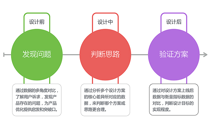 (3)設(shè)計(jì)后用于驗(yàn)證設(shè)計(jì) 通過(guò)計(jì)算上線后的產(chǎn)品數(shù)據(jù),對(duì)比設(shè)計(jì)前設(shè)定的指標(biāo)數(shù)據(jù),判斷設(shè)計(jì)目標(biāo)的實(shí)現(xiàn)程度。
