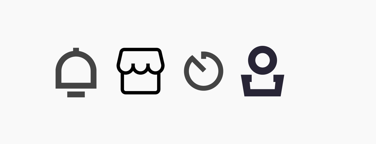 大家要明白,雖然我們可以直接下載圖標(biāo)素材,而且可以通過審美讓他們變得相對(duì)精致統(tǒng)一,但素材畢竟還是通用的,我們還是需要融入自己的想法和設(shè)計(jì),不能完全依賴素材,舉一個(gè)最簡(jiǎn)單的例子,“我的”這個(gè)圖標(biāo),他的腦袋是圓形的,那我們是不是可以把他改成矩形的?
