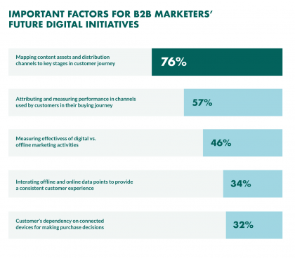 Regalix 的一項(xiàng)調(diào)查顯示,繪制接觸點(diǎn),并在旅程的每個(gè)階段都放置正確的內(nèi)容資產(chǎn)和分發(fā)渠道是?未來數(shù)字計(jì)劃的最重要因素之一。
