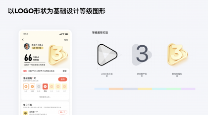 ?決定用戶動(dòng)機(jī)主要有8個(gè)核心的驅(qū)動(dòng)力:使命感、成就感、創(chuàng)造力、擁有感、社交性、稀缺感、好奇心、逃避心。因此利用用戶對(duì)于尊貴等級(jí)地位的追求進(jìn)行等級(jí)圖標(biāo)設(shè)計(jì),以LOGO形狀為基礎(chǔ)設(shè)計(jì)了等級(jí)圖形,使用辨識(shí)度和認(rèn)知成本較低的數(shù)字進(jìn)行等級(jí)彰顯,體現(xiàn)等級(jí)的遞進(jìn),同時(shí)采用不同顏色突出1至6等級(jí)的差異,高等級(jí)添加更明顯的金屬感,營(yíng)造稀有性和高貴感,同時(shí)在社交場(chǎng)景如“互動(dòng)區(qū)”、“個(gè)人中心”等,突出用戶身份。