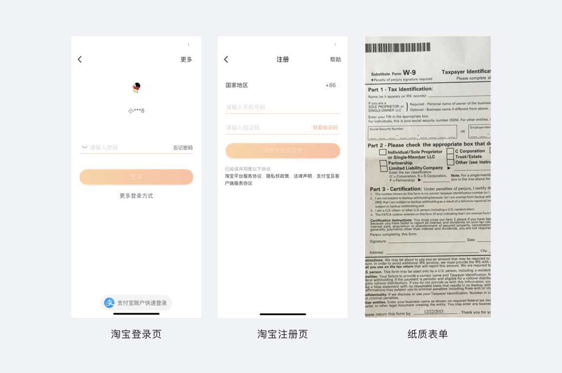 淘寶的登陸、注冊(cè)、紙質(zhì)的單子便是表單