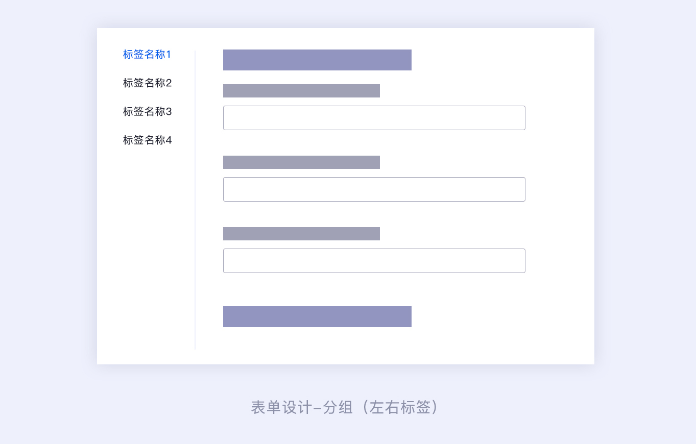 標簽分組:指的是將表單信息分組標簽化,形成獨立的小表單信息,分為上下結(jié)構(gòu)和左右結(jié)構(gòu)。
