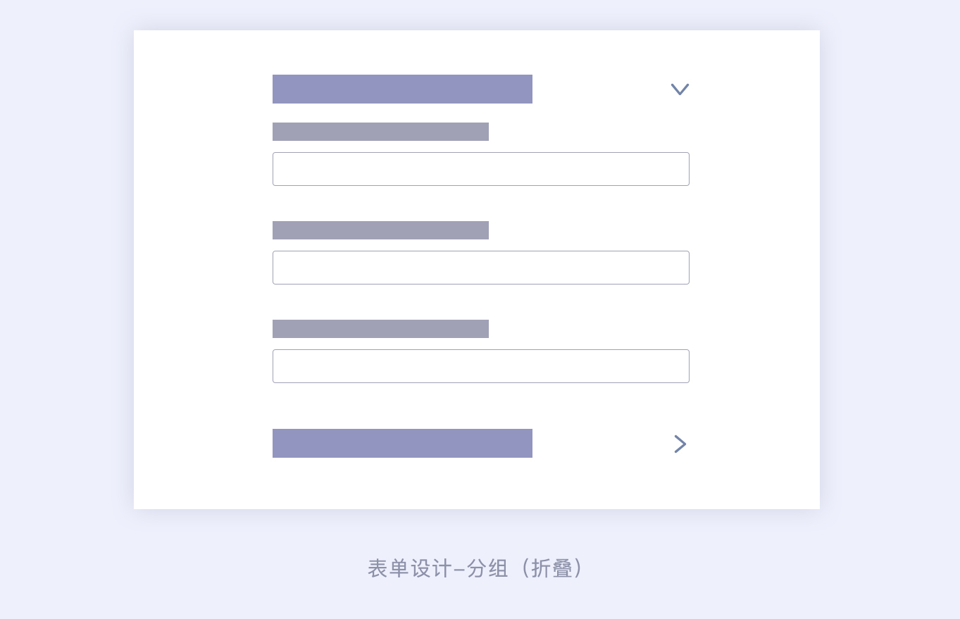 折疊分組用戶可以一眼看全表單所涉及到的大范圍,用戶鎖定某個標題范圍后,再展開去完善對應(yīng)的具體表單信息,這樣用戶就可以不用在龐大的表單信息中去尋找自己需要完成的表單信息。折疊表單一般會包含一些默認的數(shù)值,用戶可不做調(diào)整,不調(diào)整也不會影響功能的使用。如果說表單信息需要用戶手動完整的填寫或者確認,那么最好不要選擇這種表單的設(shè)計方式。