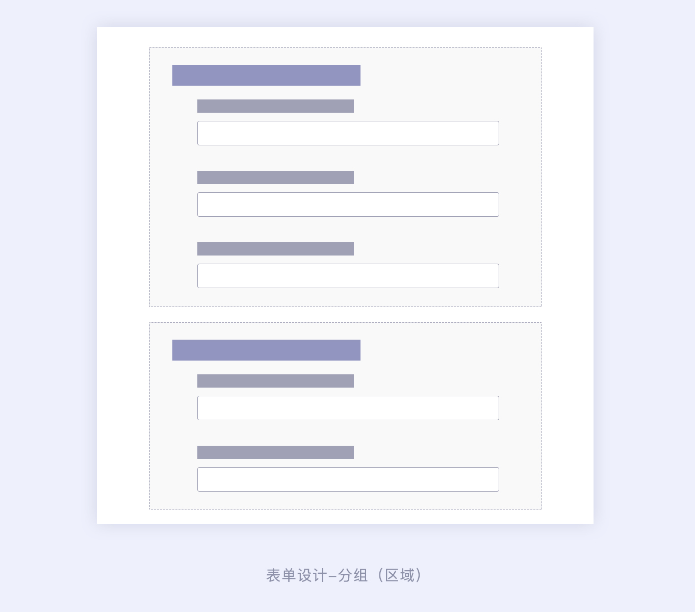 例如:下面是我在工作中所運用的一個區(qū)域分組的表單設(shè)計方式。
