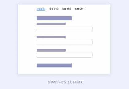 復(fù)雜的表單可以采用區(qū)域分組的形式,還可以采用標簽分組的設(shè)計形式。標簽分組可以一眼看全所有分組大類信息,對于一個表單涉及到多種信息字段的情況,并且每個組的字段信息都是獨立的,不是強相關(guān)的,那么我們就可以采用標簽分組的形式。