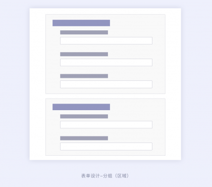 在B端設(shè)計中,一些復(fù)雜的表單會通過區(qū)域分組的形式排版設(shè)計,可以將一個表單的信息通過信息的關(guān)聯(lián)關(guān)系劃分不同的區(qū)域形成小組信息,這樣有利于信息的歸類以及信息的填寫。用戶在看到復(fù)雜表單的時候不會被龐大的表單迷惑,可以更好的找到表單字段,也可以讓用戶填寫表單更有秩序、更清晰。區(qū)域分組的使用場景,一般也是針對復(fù)雜表單且具有強相關(guān)的信息關(guān)系。