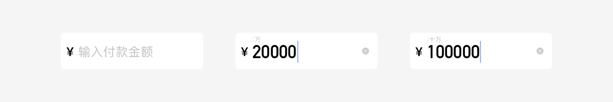 無金額輸入時,輸入框能給予用戶提示,這是比較常見的輸入框組件設(shè)計,預(yù)置提示文本;