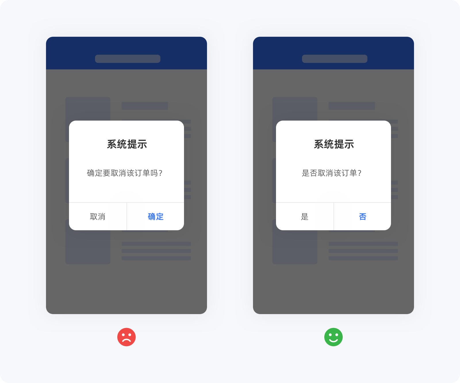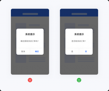 用戶的每一次操作及信息的接收都是與產(chǎn)品的一次交流,在對話方面,不應該使用多重否定、較長的定語或含糊其辭的描述,以免用戶出現(xiàn)認知偏差導致理解上的錯誤,減少用戶出錯率最直接的方法就是用通俗易懂的極簡話術與其交流。