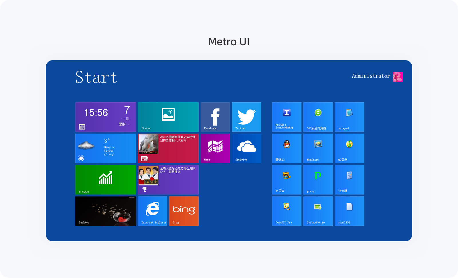 將復雜的設計簡單化,剔除大部分多余元素是奧卡姆剃刀在設計中的核心理念,但它并不是一味的強調簡單的就是好的、復雜的就是差的,應確定好這兩種形式的邊界在哪里、目的是什么?;貧w設計本身,剔除的目的不在于追求至簡,而是通過合情合理的減法讓用戶更好的接收信息以及完成目標,一旦“剔”的過猛就會傷筋動骨。2007年,巨頭企業(yè)微軟推出的 Metro UI 就是一個很好的例子,全面去除光影、色彩變化以及質感等細節(jié),直接以簡單的色塊+icon組合展示,讓其變的毫無層次感,多用一點時間就會發(fā)現(xiàn)這種簡潔過于單調,很容易讓人產(chǎn)生審美疲勞。雖說微軟設計師的這套扁平設計理念新穎且超前,但用戶并沒有買賬,極度的扁平直接導致極度的冷淡。Metro UI 的失敗讓后面的 Windows 10 直接放棄了這套設計語言,重新引入了豐富的細節(jié),讓設計從純粹的扁平中得以解脫。超前一代是天才,超前兩代就是瘋子,很顯然,Metro UI 超前過頭了,這一反面案例應該值得所有設計師深思。當然,這么說有點“馬后炮”的味道,但前輩們已踩過的坑就是我們最好的避坑經(jīng)驗。