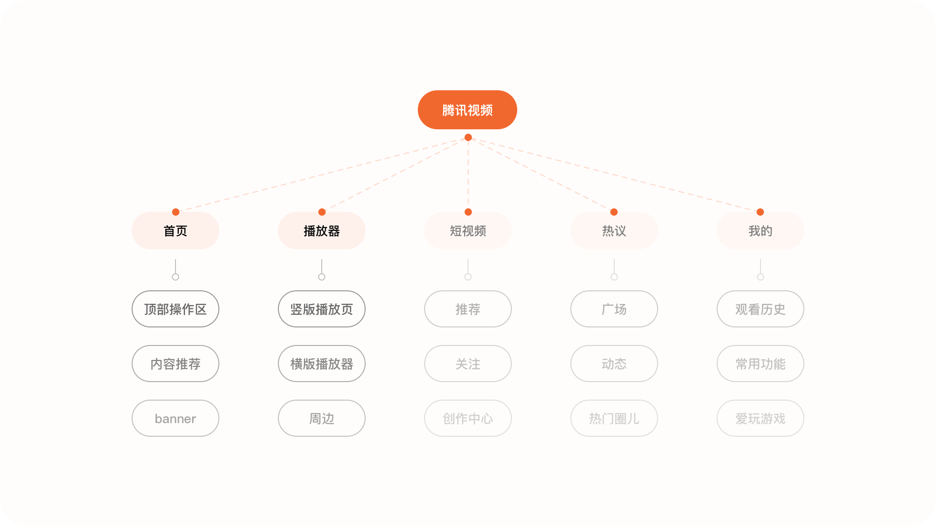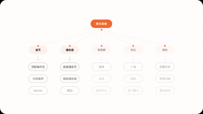 1.內容結構作為視頻內容平臺,通過對騰訊視頻APP的結構梳理,發(fā)現(xiàn)產品內大部分的內容都是圍繞視頻來進行拓展,整體框架分為:首頁、短視頻、VIP會員、熱議、我的這幾個模塊。本次我們主要針對于首頁與播放器這兩個場景進行重點分析