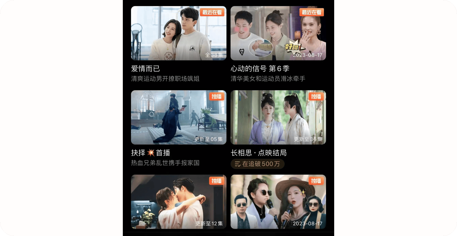 2.2.3產品亮點:視頻大卡片推薦這種樣式的推薦形式雖然同屏下相比雙瀑布流的可推薦內容少,但可以讓用戶更注重內容視頻本身,推薦的視頻內容都為該作品的熱門片段,小編經??粗粗桶怖艘粋€新劇,很適合作為長視頻推薦列表使用