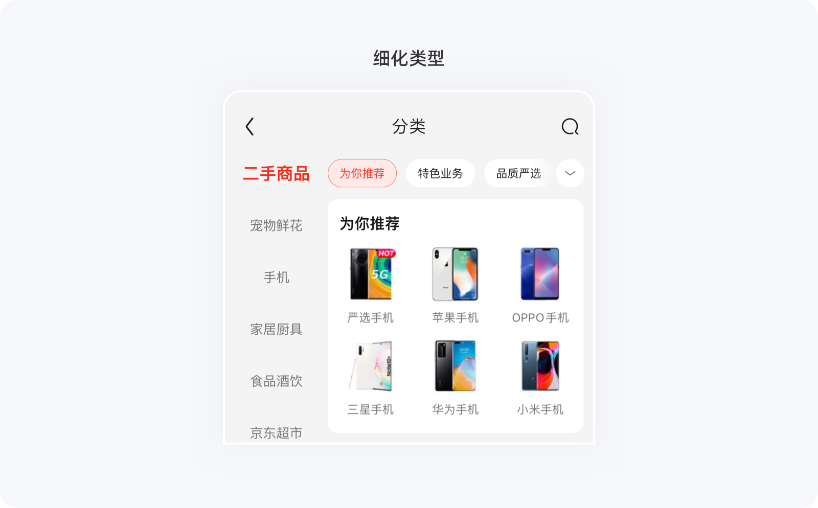 這里最為典型的例子就是電商平臺的分類,它通過一級、二級、甚至三級分類將商品所涉及到的類型合理的控制在有效范圍內(nèi),這些選項被分類/分組之后,關(guān)鍵信息得到強化,能輔助用戶快速作出決策。還有后面的二次篩選功能,幫助用戶進一步縮小范圍,選擇效率明顯會更高。當(dāng)然,這不僅僅是依靠??硕桑€得結(jié)合運營需求、用戶數(shù)據(jù)等因素進行合理化分類。
