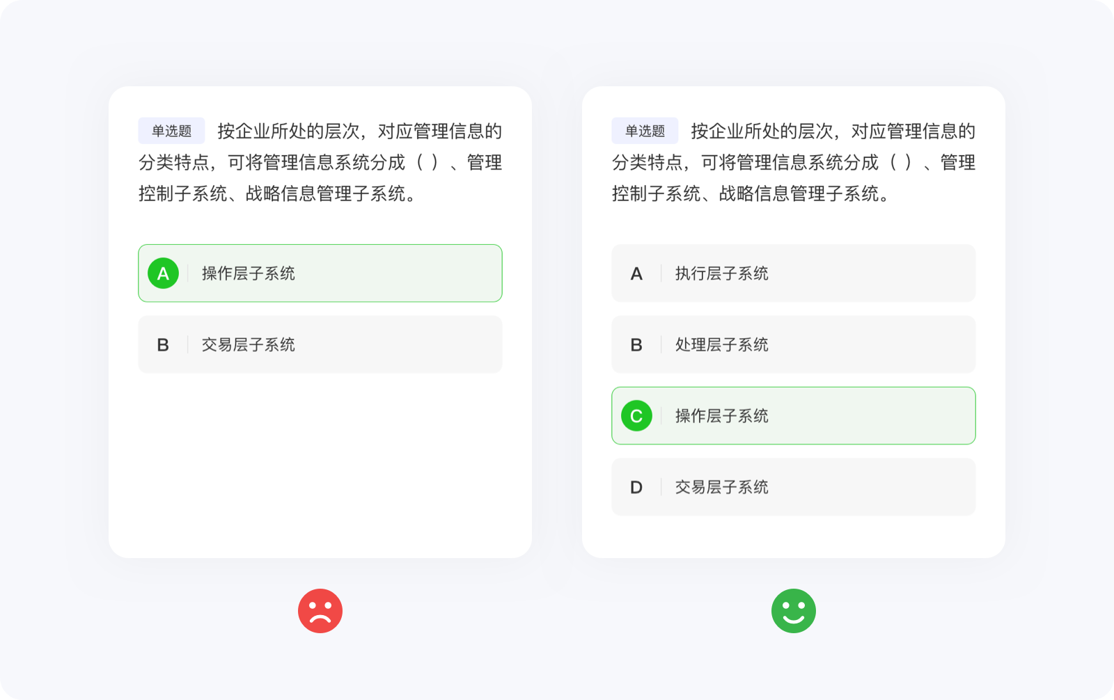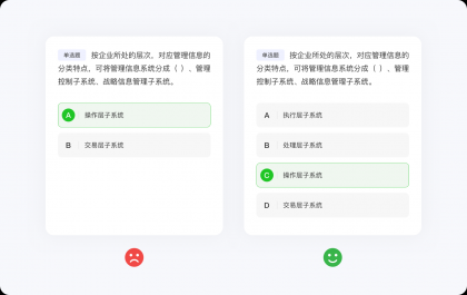 任何定律都有其自身的使用局限,所以也不要極度推崇??硕啥喕匠橄蟮牡夭?。大部分情況下,??硕啥际怯迷诳山换ソ缑嬷械脑兀瑢τ谀切┬枰叨人阉?、閱讀或?qū)W習(xí)刷題類的功能并不適用,因為設(shè)計師只能決定信息呈現(xiàn)的視覺效果,并不能決定內(nèi)容的質(zhì)量、類型與數(shù)量。例如,刷題類應(yīng)用,面對海量的選擇題,??硕呻m然失去價值,但并不影響設(shè)計師結(jié)合其他方法論將界面設(shè)計的更好,總不能強行使用希克定律,將選擇題刪減到只剩兩個(變成判斷題)選項吧。