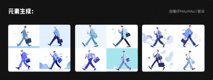 主題內(nèi)容:A man walking with phone and briefcase藝術(shù)風(fēng)格:folk-inspired illustrations、animated gif, elegant lines色彩色調(diào):blue and light blue