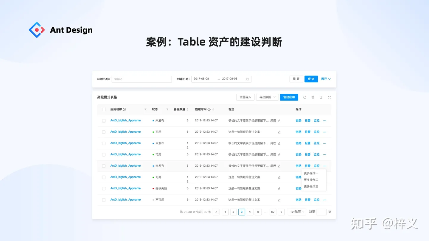 我們都知道,任何一個設(shè)計系統(tǒng)都有關(guān)于表格組件的定義,但各有差異。這種差異的根源也正是從物的規(guī)范去理解表格這個資產(chǎn)帶來的。過去我們內(nèi)部也是從物的角度去抽象結(jié)構(gòu)表格的建設(shè)范圍,會發(fā)現(xiàn)越抽象越多,最終只能交給專家感性判斷做什么與不做什么。