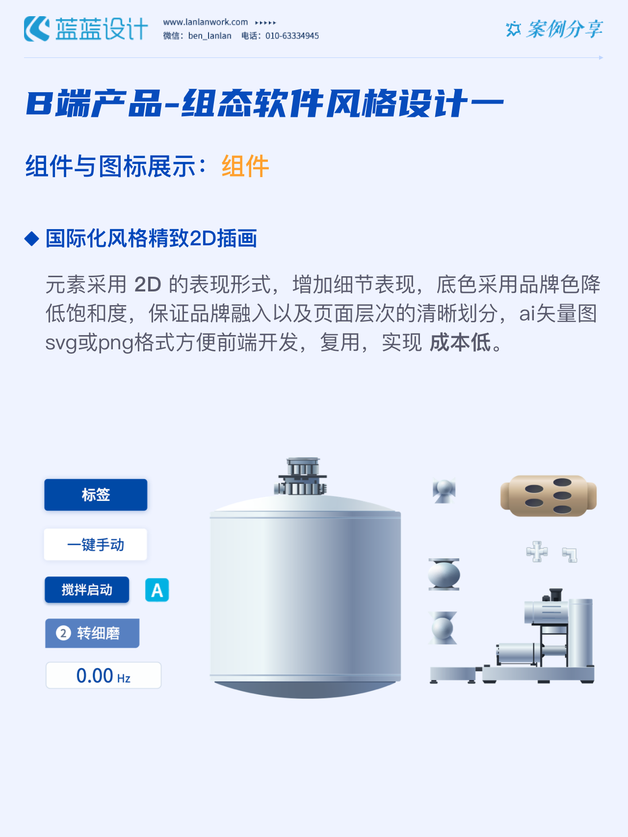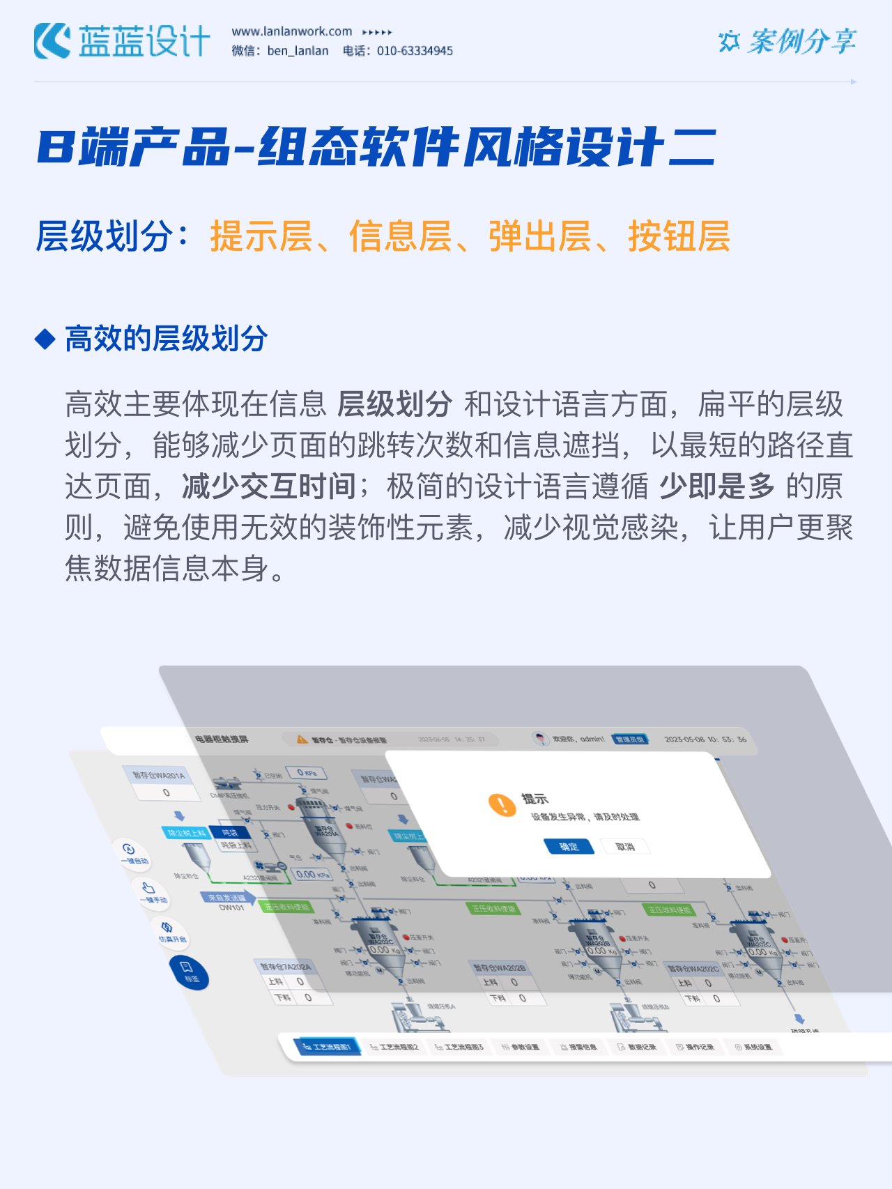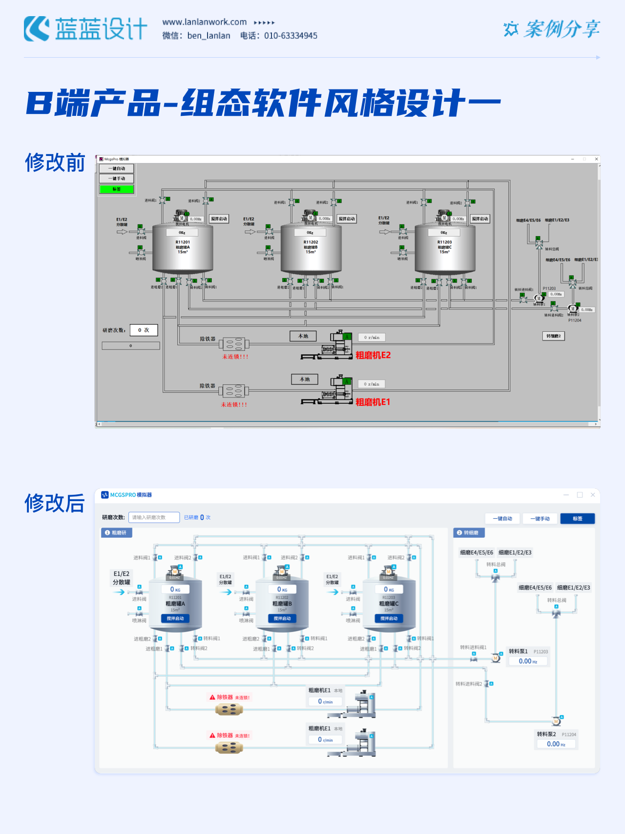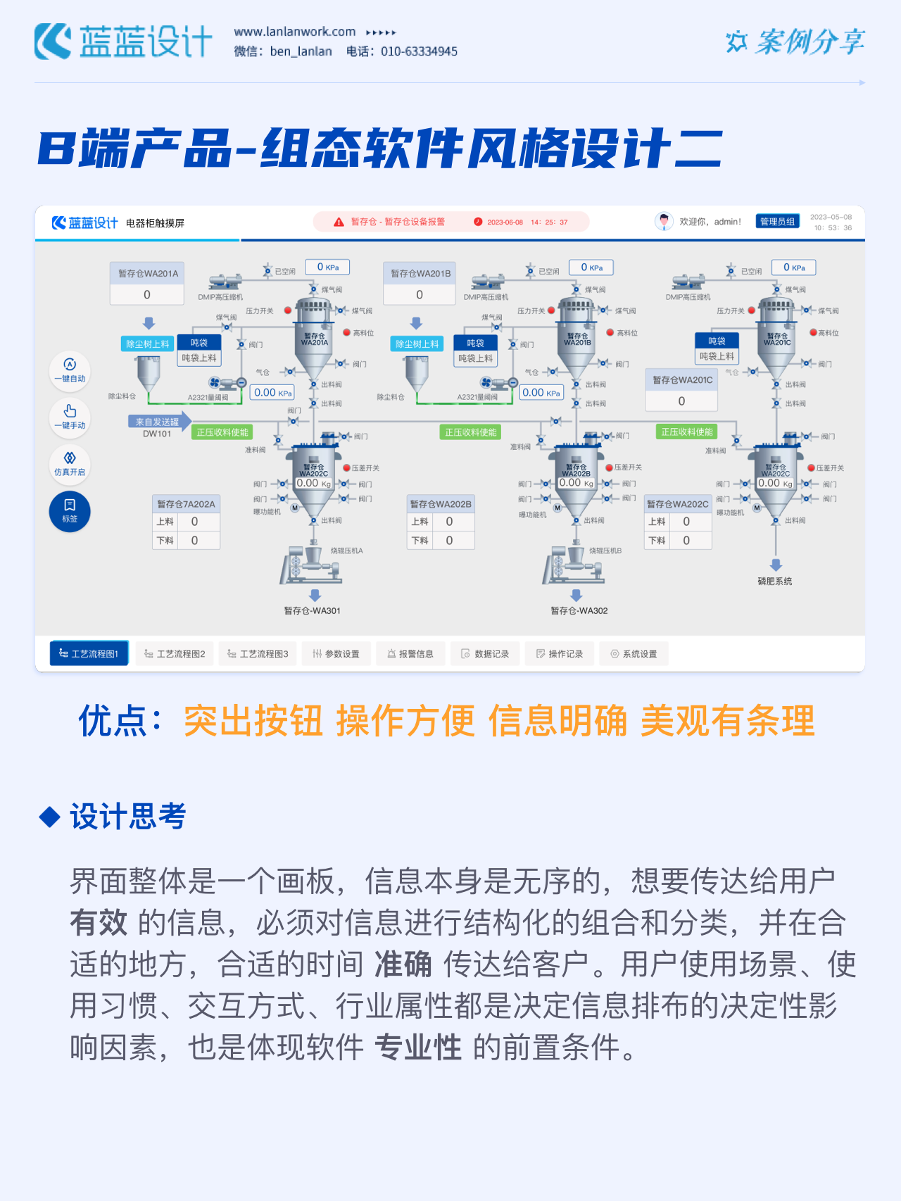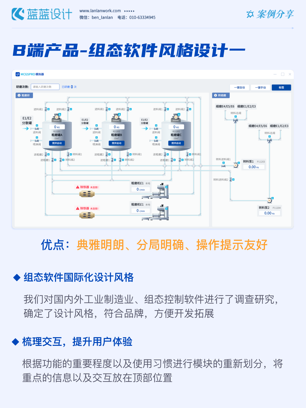 藍(lán)藍(lán)設(shè)計(jì)的兩種組態(tài)軟件風(fēng)格都采用符合當(dāng)下審美潮流的2D插畫效果,既保證了視覺效果美觀的同時(shí)也降低落地成本,方便后續(xù)的拓展、修改、提升與設(shè)計(jì)效率,同時(shí)注重用戶的閱讀習(xí)慣,將原功能點(diǎn)重新布局,主次內(nèi)容對(duì)比明顯,降低視覺噪音,保證清晰順暢的操作,提升用戶體驗(yàn)!