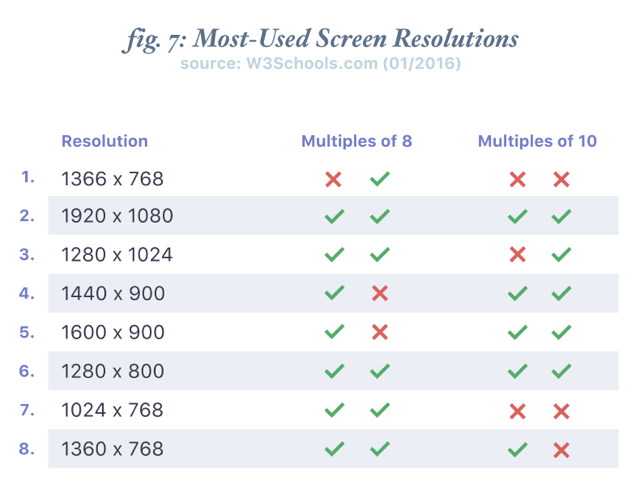 - 多平臺設(shè)計:不管外形如何,最流行的屏幕尺寸至少在一個軸上可以被 8 整除,通常是兩個軸。此外,一些平臺的樣式指南(如 Material Design)特別要求使用 4 或 8 點的網(wǎng)格,這使得該系統(tǒng)非常適用。