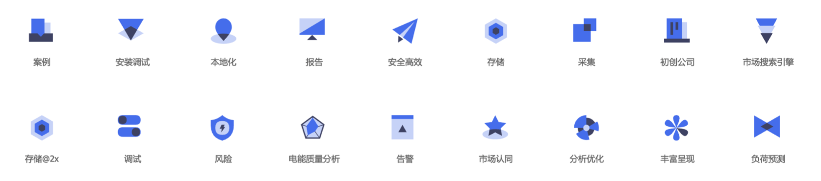 1. 面性圖標(biāo)(基礎(chǔ)款):以純色填充為主,造型簡(jiǎn)潔、分量感強(qiáng),傳遞穩(wěn)定、安全的感覺(jué)。適合企業(yè)服務(wù)、工具類產(chǎn)品,比如指揮中心、綜合管理、個(gè)人賬號(hào)管理等功能模塊。使用時(shí)要注意與其他界面元素的體量平衡,避免因過(guò)于厚重破壞信息層級(jí)。