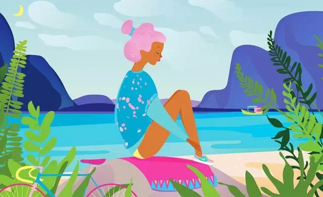藍(lán)色與多種顏色相搭配,盡量選中一個(gè)作為主色,比如上圖中以藍(lán)色作為主色,無論是遠(yuǎn)山天空還是河流,包括人物的衣服都是藍(lán)色,與此同時(shí),粉紅作為點(diǎn)睛色。畫面雖然大量運(yùn)用藍(lán)色,會(huì)偏向冷調(diào),但此處運(yùn)用了紅色、黃色和偏暖的綠色就讓畫面的顏色達(dá)到了平衡。
