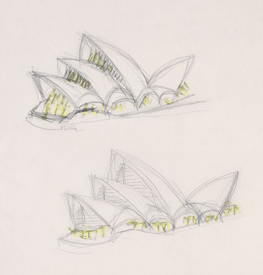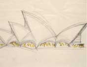 (Juon Utzon),在和家人旅行途中偶然看到了澳洲政府向海外征集悉尼歌劇院設(shè)計方案的廣告。他對遠(yuǎn)在天邊的悉尼城根本一無所知,但是他從小生活在海濱漁村的 生活經(jīng)歷,和與兩個來自澳大利亞的姑娘對悉尼的描述中獲取靈感,與其說是完成了一個建筑的設(shè)計方案,倒不如說是隨手畫了幾張潦草的速寫。甚至當(dāng)他寄出自己 的設(shè)計方案時,他都沒有料到,又一個“安徒生式的童話”將要在南半球上演。 約翰·烏特松