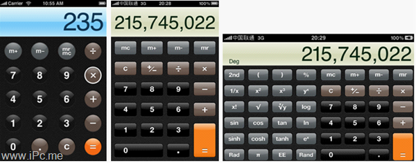 iPhone游戲里出現(xiàn)橫豎屏設(shè)計(jì)比較正常,都是視具體的游戲類型來(lái)分。但一般的效率型應(yīng)用或?qū)嵱霉ぞ?,也是橫豎屏都有。林子大了,什么鳥都有,有 些用戶就是喜歡經(jīng)常將屏幕旋轉(zhuǎn)過(guò)來(lái),而且還不在少數(shù)。他們或是喜歡橫屏的瀏覽方式(如備忘錄、音樂(lè)),或是希望打橫可以看到更多的信息(如計(jì)算器)。設(shè)計(jì) 的時(shí)候必須充分考慮用戶的期望。有時(shí)將界面內(nèi)容旋轉(zhuǎn)就可以簡(jiǎn)單滿足他們的需求,但有時(shí)也需要你重新去設(shè)計(jì)以展示更多的內(nèi)容(如橫屏的音樂(lè)會(huì)出現(xiàn)一個(gè)新的界 面,展示所有的歌曲)。