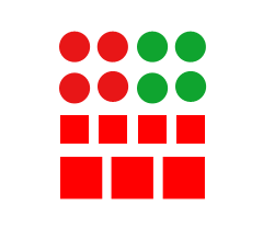 相似原則 強調的是內容。人們通常把那些明顯具有共同特性(如形狀、大小、顏色等)的事物組合在一起,即:相似的部分在知覺中會形成若干組。下圖中,根據(jù)形狀,我們將其看成圓形和方形;根據(jù)大小,我們又可將方形看成大方塊和小方塊;根據(jù)顏色,我們可以將圓形看成紅色和綠色兩個整體。