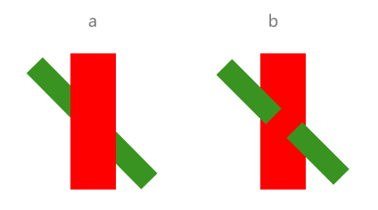 連續(xù)原則 和閉合原則有些類似。以實物形象上的不連續(xù)使瀏覽者產生心理上的連續(xù)知覺。看到a圖,瀏覽者會認為是一個綠色條和一個紅色相交,而事實卻是b圖。