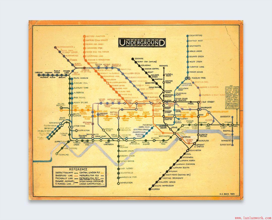 說(shuō)到英格蘭,信息圖表歷史上的一大步是在1933年,當(dāng)時(shí)哈里貝克創(chuàng)建了倫敦地鐵的第一張地圖,只顯示了描繪公共交通路線(xiàn)和車(chē)站的線(xiàn)路。這是一個(gè)重要的發(fā)展,因?yàn)樗鼘⒁曈X(jué)圖表移動(dòng)到日常生活中。