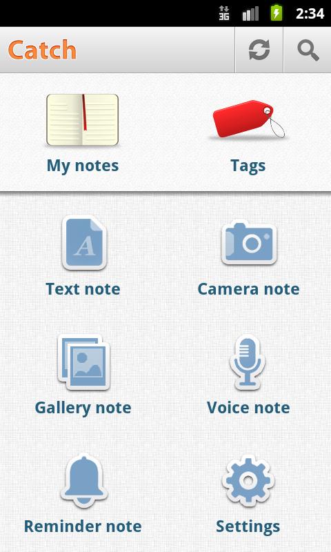(Catch Notes用戶的多數(shù)動作可利用應(yīng)用中的大圖標(biāo)功能實(shí)現(xiàn),這款應(yīng)用遵從了基本原則,因而運(yùn)轉(zhuǎn)良好。)