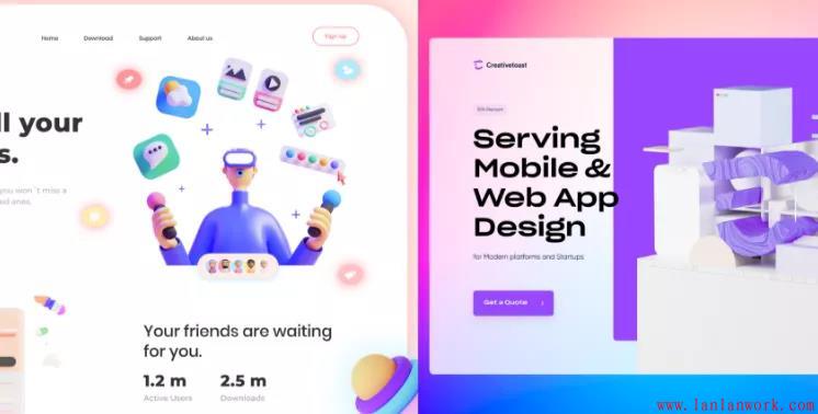坦白的說,3D設計已經(jīng)不是新鮮的玩法,但它正變得越來越酷。這種設計趨勢無疑充分利用了從插圖到排版的現(xiàn)代技術(shù)進步和軟件功能。