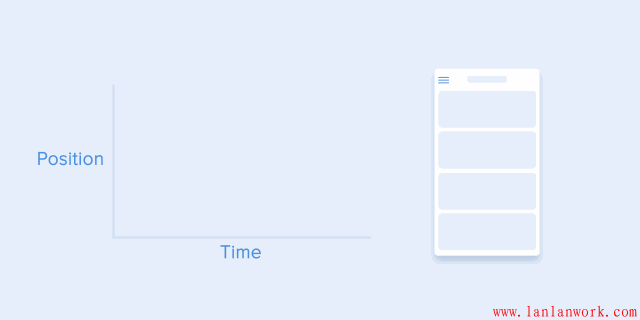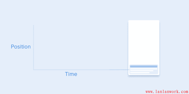 物體沿曲線移動的路徑必須與滾動界面的方向重合。例如,在下面的例子中,我們可以上下滾動界面,相應(yīng)地,卡片以垂直的方式展開更合適——先向右,然后向下。