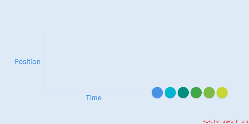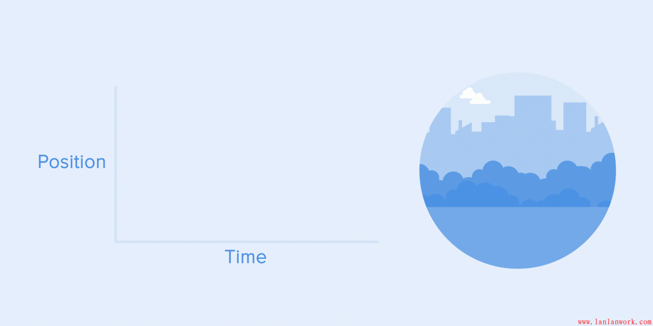 所有的APP動畫都會用到動畫曲線。我將試著去解釋如何閱讀它們并說明它們的含義。下面的例子中,運動就是勻速的,可以看到對象在相同的時間間隔中移動了相同的位置。