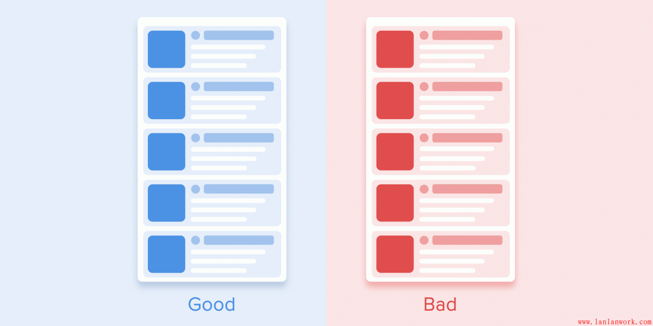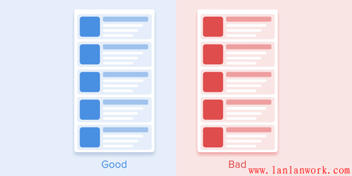 列表項的出現(xiàn)應(yīng)該只允許有一個短暫的延遲。每一個新列表項的出現(xiàn)間隔應(yīng)該在20-25ms之間。元素出現(xiàn)太慢的話,會讓用戶感到很不爽。