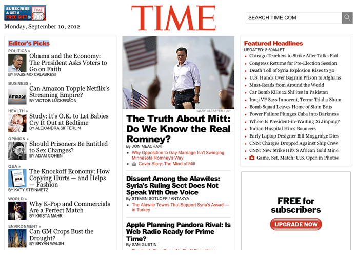 我們看新聞時(shí)首先要關(guān)注的當(dāng)天的頭條新聞,其次是編輯推薦的,時(shí)代周刊首頁(yè)很好的讓頭條新聞和logo一起第一眼被我們捕捉到,主次處理的很清晰