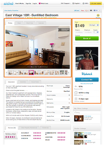 上圖是Airbnb的租房信息detail頁(yè)面,租客在租房時(shí)最關(guān)心的信息為:房間實(shí)景、價(jià)格、房東的信息;看它的detail信息,也存在很多種類型,但用戶最關(guān)心的三類信息因?yàn)槲恢?、占用的面積大小讓租客一眼就能掌握房子的基本信息,如有興趣再繼續(xù)看更多詳情。