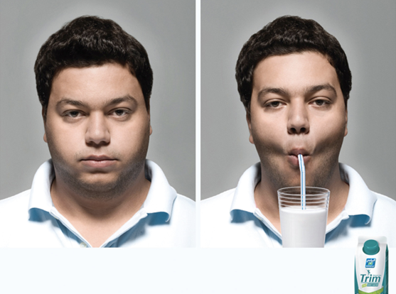 上圖是一個(gè)減肥飲料的廣告,通過(guò)前后人物的變化,輕松的表達(dá)產(chǎn)品的功效,而在我們網(wǎng)頁(yè)界面中,主要還是通過(guò)色彩的對(duì)比和方向指向來(lái)傳達(dá)順序關(guān)系