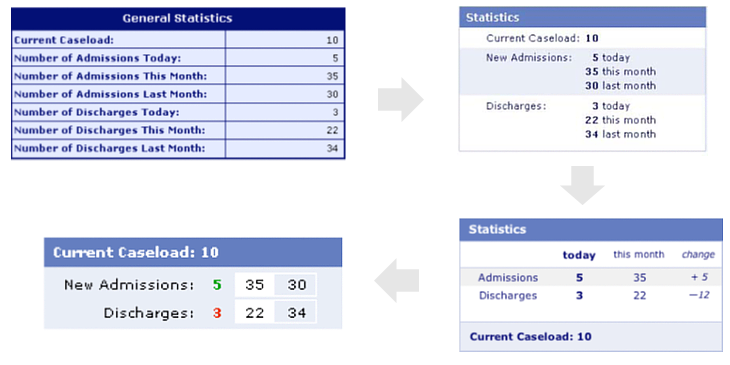上圖是設(shè)計(jì)師對(duì)數(shù)據(jù)表格的優(yōu)化過(guò)程,第一版為簡(jiǎn)單的信息羅列;去掉重復(fù)的文案后并將表格本身的設(shè)計(jì)弱化,突出內(nèi)容本身,第二版相對(duì)清晰了很多;第三版繼續(xù)將重點(diǎn)進(jìn)行加粗,改變排列方式可再次減少文案重復(fù)情況;第四版是該表格用戶調(diào)研過(guò)程中反映最好的版本,因?yàn)橛脩魰?huì)長(zhǎng)期使用該表格來(lái)獲取數(shù)據(jù),設(shè)計(jì)將非重點(diǎn)文案進(jìn)行隱藏,用戶鼠標(biāo)移上后才顯示該數(shù)據(jù)代表的含義,教育過(guò)一次后用戶再看這個(gè)表格就不再受眾多解釋文案的干擾,直接獲取想要的信息;一個(gè)看似簡(jiǎn)單的表格,抓住重點(diǎn)信息,優(yōu)化空間還是很大的。
