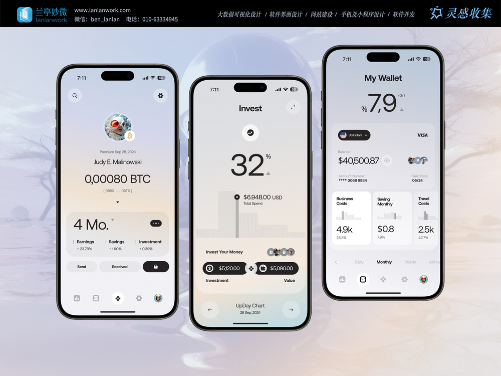 這是一款極簡風(fēng)格的投資與錢包管理應(yīng)用,主打數(shù)據(jù)可視化和柔和的漸變色彩。