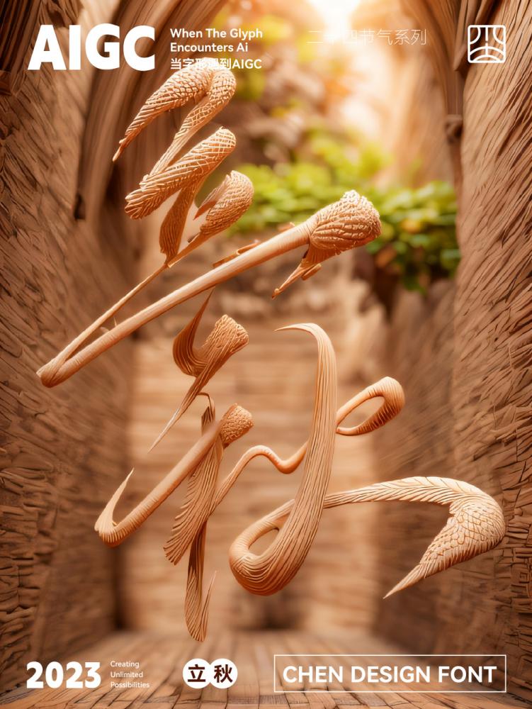 • 節(jié)氣 / 傳統(tǒng)主題:圖 5 “立秋” 海報(bào),將 “秋” 字塑造成木雕質(zhì)感的羽毛形態(tài),既保留書(shū)法的筆意,又以 “秋雁” 的意象呼應(yīng)節(jié)氣,讓文字成為 “節(jié)氣文化” 的視覺(jué)符號(hào);