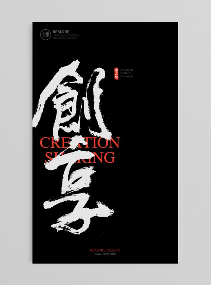 • 狂草的張力:像圖 4 “創(chuàng)享” 海報(bào),飛白的筆觸、大開(kāi)大合的結(jié)構(gòu),將 “創(chuàng)享的熱烈” 直接通過(guò)線條的動(dòng)感傳遞,黑底白字的對(duì)比更放大了這種酣暢感;