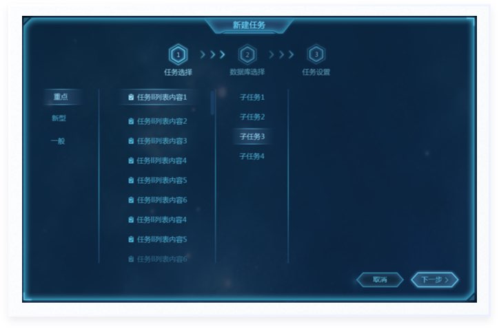 視覺方面使用大屏常用的深色背景,主色采用藍(lán)色配色,通過整體排版,元素的設(shè)計(jì),來凸顯科技感。頁面布局方面,采用模塊化布局,便于區(qū)分信息類別;扁平化的視覺元素+框式設(shè)計(jì),最大程度地減少頁面元素的干擾,提升頁面內(nèi)容承載量。