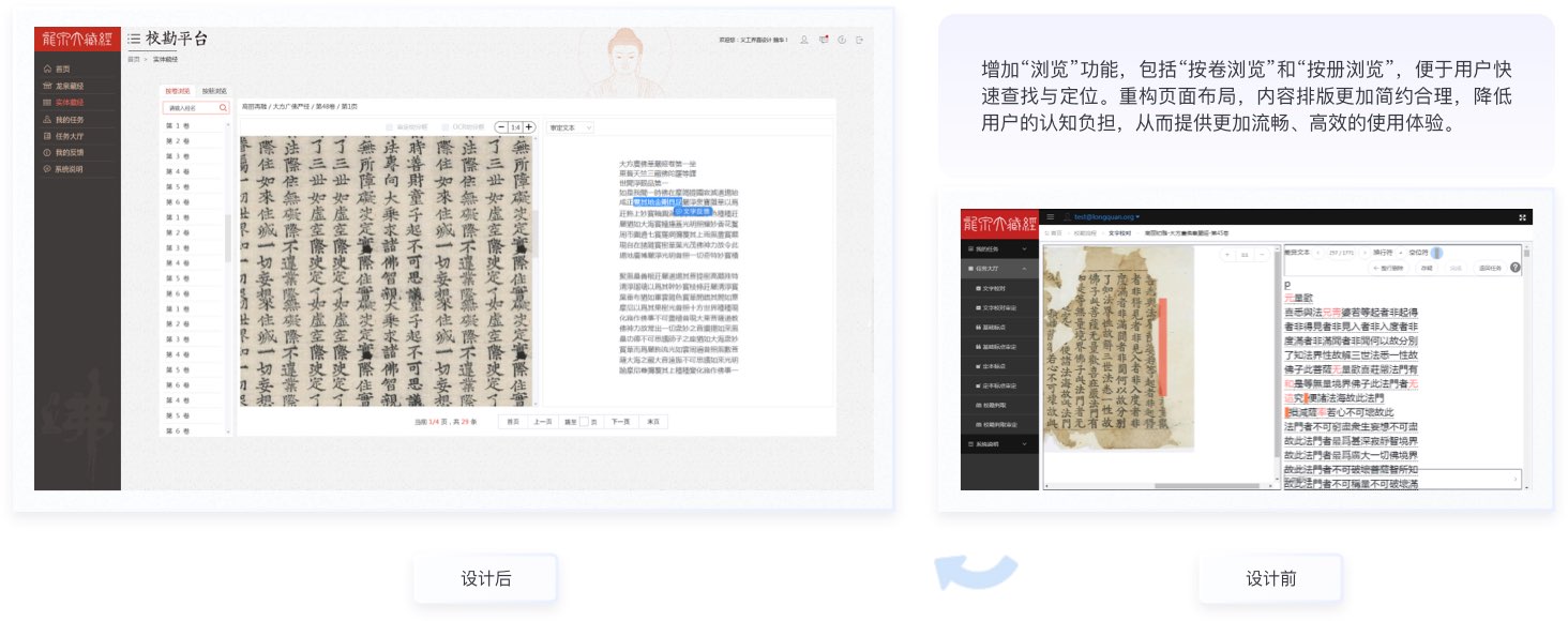 通過放大藏經(jīng)視圖的設(shè)計方式,創(chuàng)造一種沉浸式的瀏覽環(huán)境,用戶可以更加專注于內(nèi)容,從而增加停留在界面的時間,有助于提升瀏覽體驗。